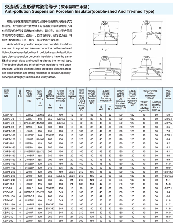 交流耐污盤形懸式絕緣子(雙傘型和三傘型)