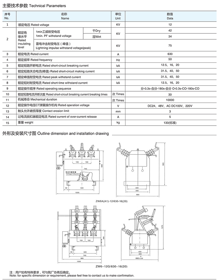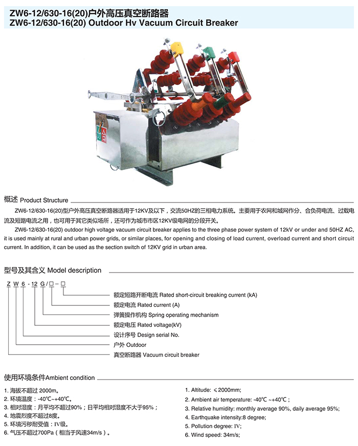 ZW6-12/630-16(20)系列戶外高壓真空斷路器