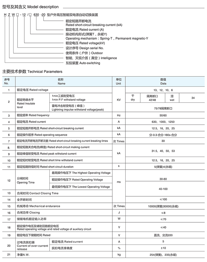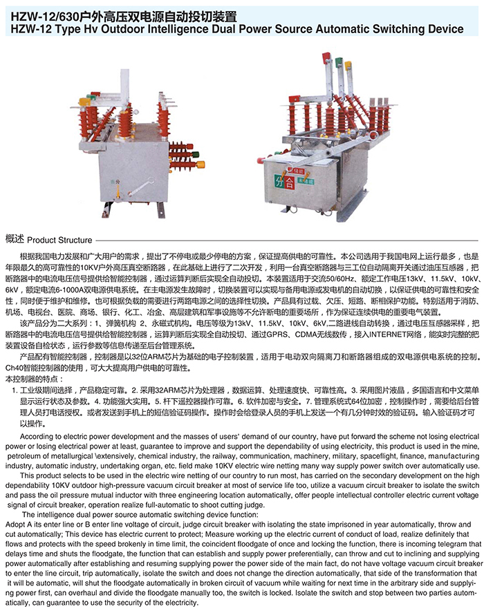 HZW-12/630戶外高壓雙電源自動(dòng)投切裝置
