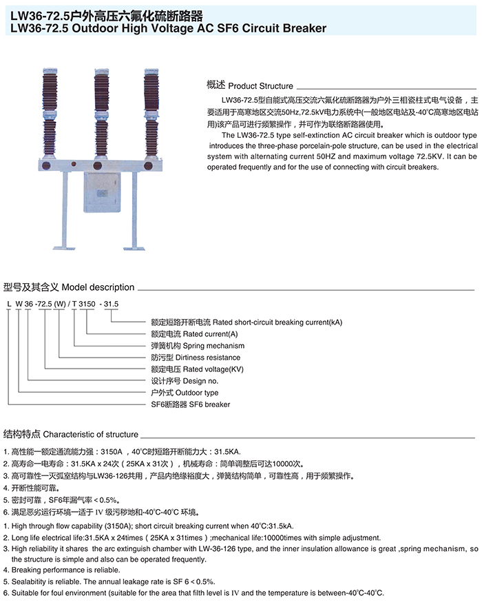 LW36-72.5戶(hù)外高壓六氟化硫斷路器