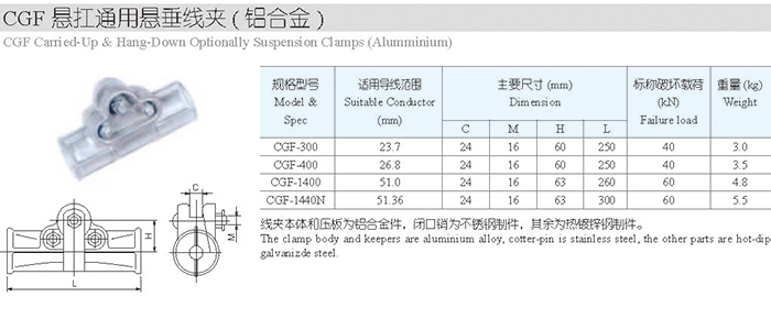CGF懸扛通用懸垂線夾(鋁合金)