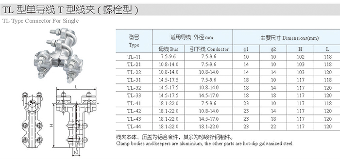 TLS型雙導(dǎo)線單引下T型線夾(螺栓型)