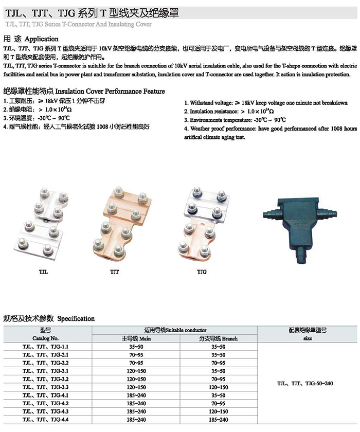 TJL、TJT、TJG系列T型線夾及絕緣罩