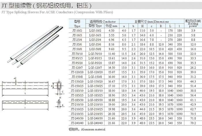 JT型接續(xù)管(鋼芯鋁絞線用,鉗壓)