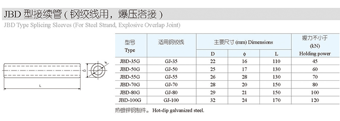JBD型接續(xù)管(鋼絞線用,爆壓搭接)