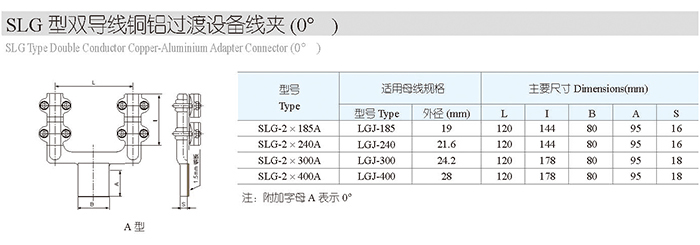 SLG型雙導(dǎo)線銅鋁過渡設(shè)備線夾(0°)