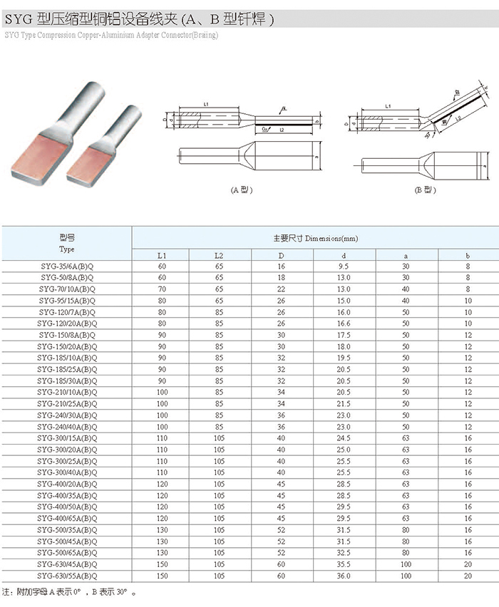 SYG型壓縮型銅鋁設備線夾(A、B型)