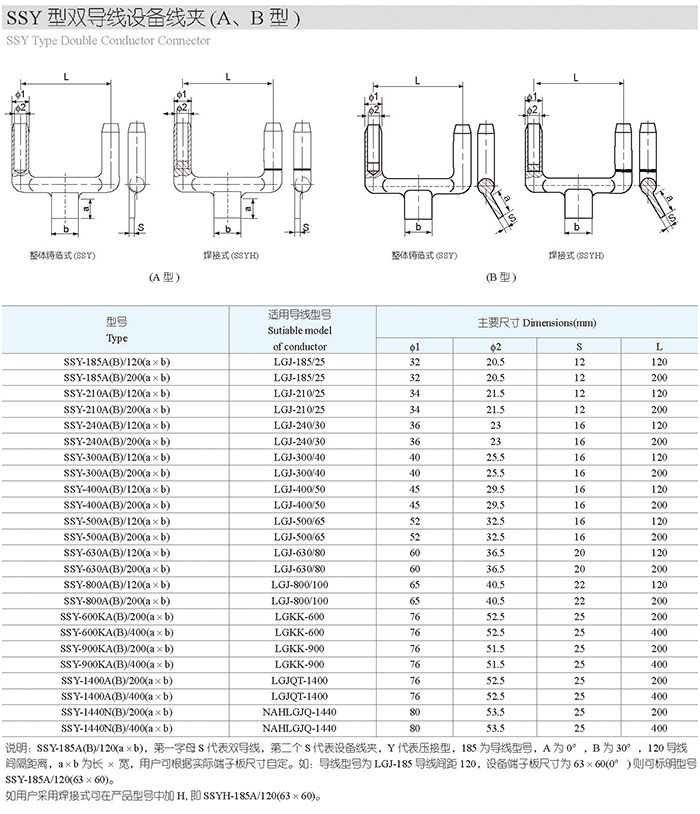 SSY型雙導(dǎo)線設(shè)備線夾(A、B型)