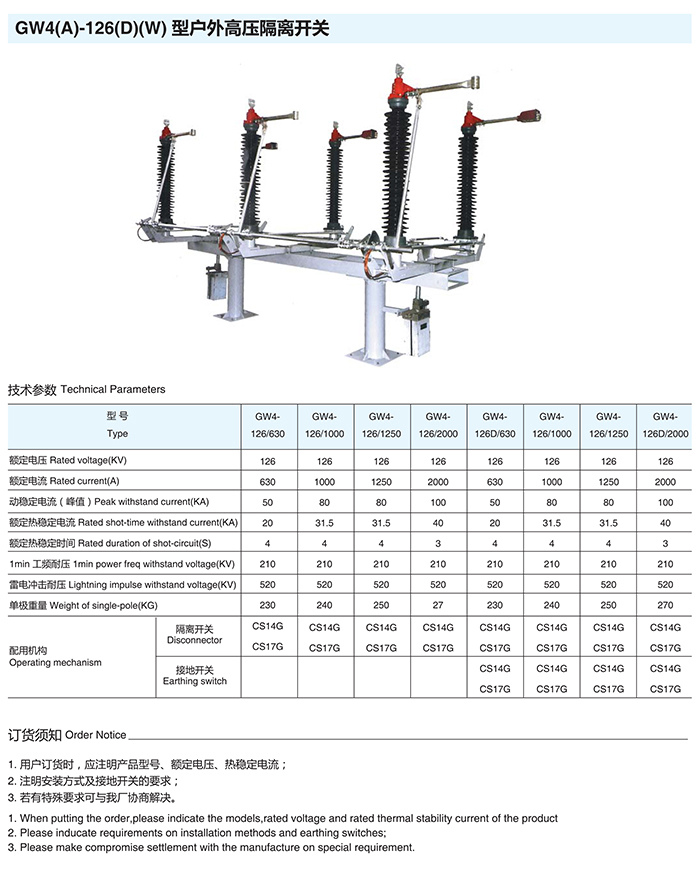 GW4(A)-126(D)(W)型戶外高壓隔離開關(guān)