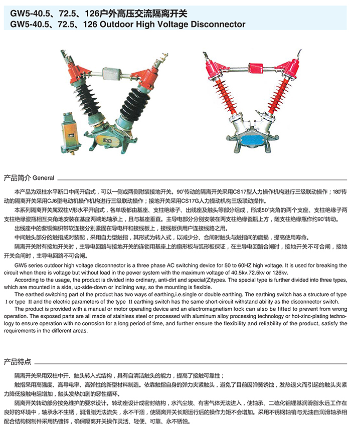 GW5-40.5、72.5、126戶外高壓交流隔離開關