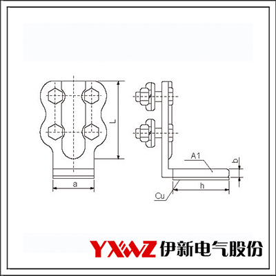 SSYG型雙導(dǎo)線銅鋁過渡設(shè)備線夾(90°)